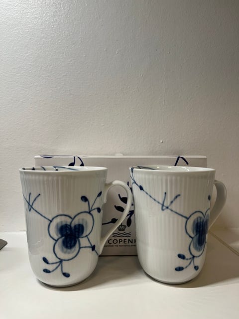 Royal Copenhagen Mega Musselmalet Riflet krus blå hvid porcelæn 36 cl (2 stk)