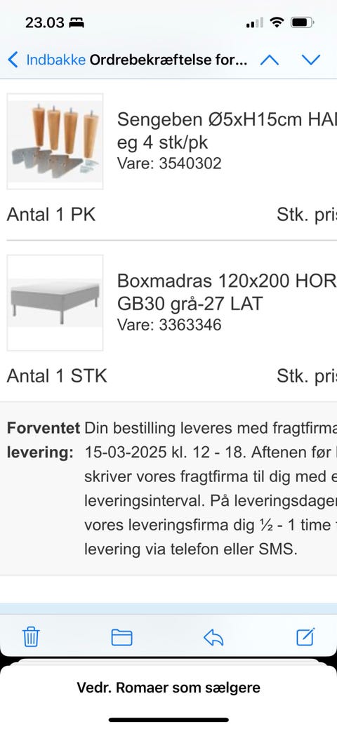 Trekvart seng.