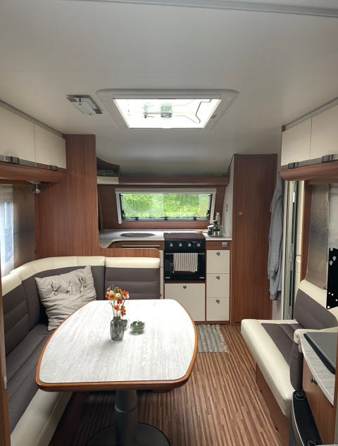 Cabby campingvogn med siddegruppe og køkken