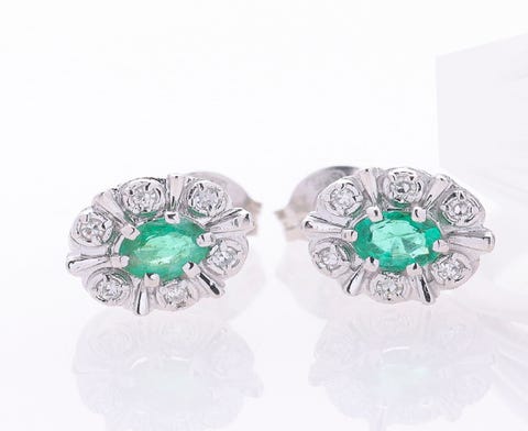 Par diamant og smaragd ørestikker