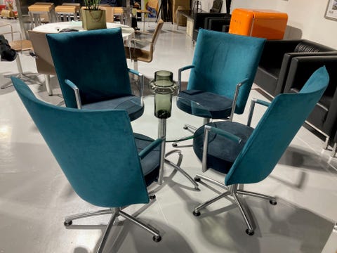 Nyompolsterede dreje stole.