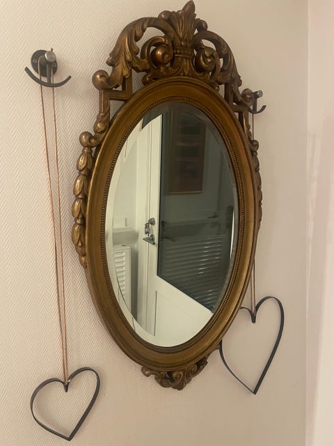 Ovalt spejl i guldramme