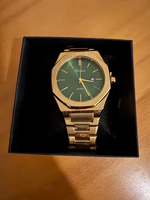 Fint guld ur med grøn skive
