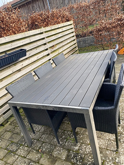 Havebord med 6 flettede stole
