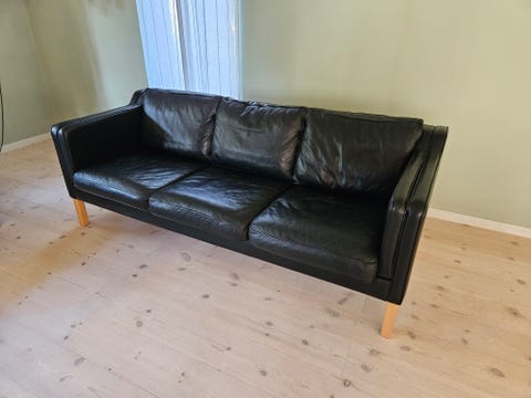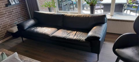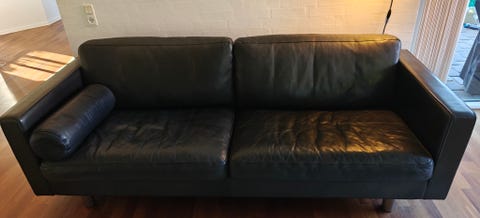 Sort 3 Pers. Lædersofa i semianilin