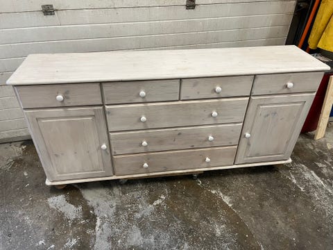 Kommode i afsyret fyrretræ.