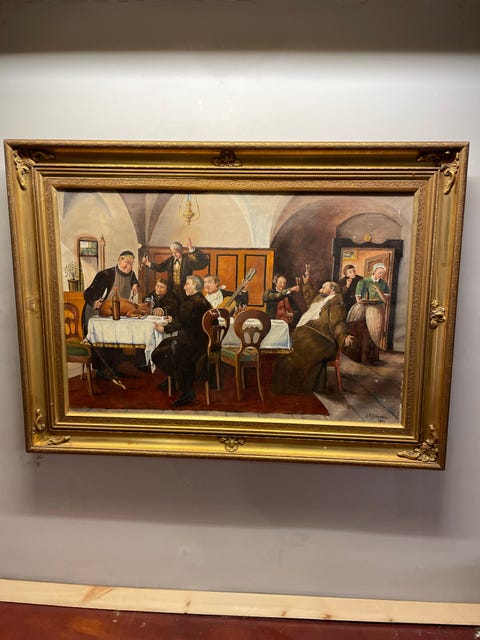 Maleri med guldramme.