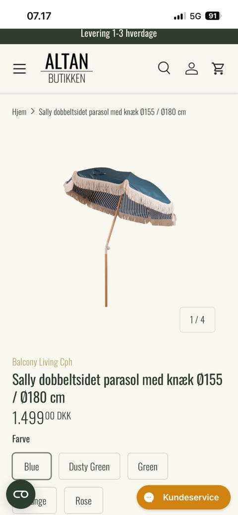 Grøn stor parasol incl. fod.