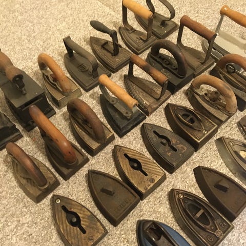 Samling gamle antikke strygejern