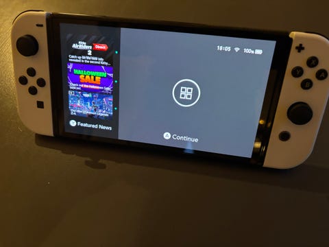 Nintendo Switch OLED Spillekonsol med hvide Joy-con controllere og Minecraft CD