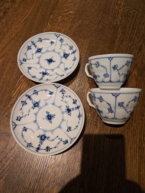 Rigtig fint spisestel fra Royal Copenhagen (Fredensborg Blue) i meget god stand.