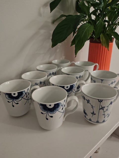 Royal Copenhagen Krus - 10 stk. Mellem str. Mega Malet, Musselmalet og hvide.