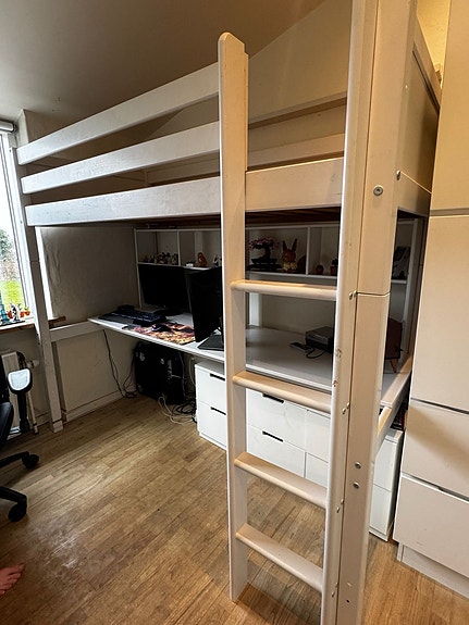 Højseng med skrivebord og reol