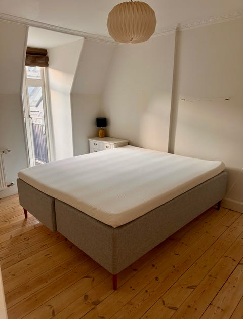Dobbelt seng, med topmadras
