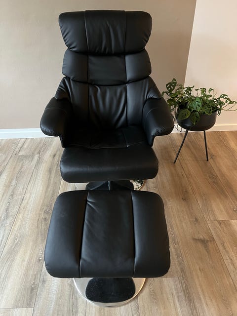 Corona stol med skammel, sort læder