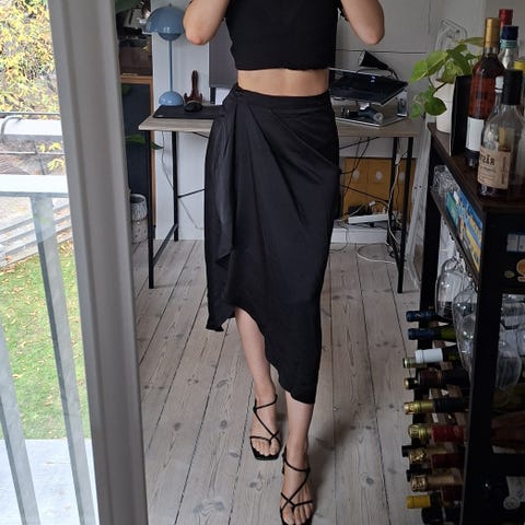 Flot sort nederdel med lommer, knapper og lynlås i str. 38. Mrk. Soyaconcept