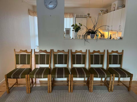 Seks stole i mørkbejset eg.