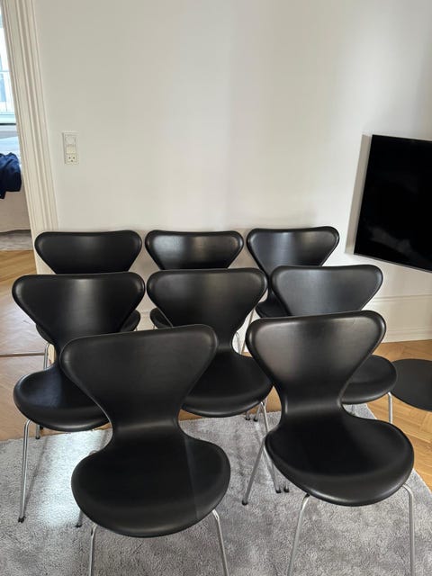 Arne Jacobsen syver med sort stel.