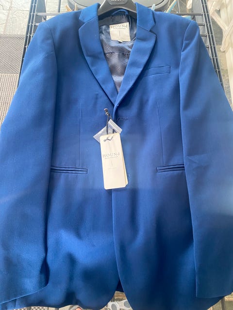Lang stilfuld kjole str L, gråblå m flotte plissélæg og shine i stof - ny/ubrugt