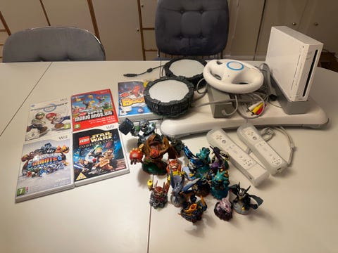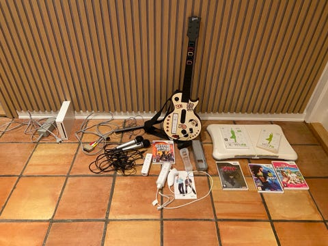 Nintendo Wii med udstyr og spil