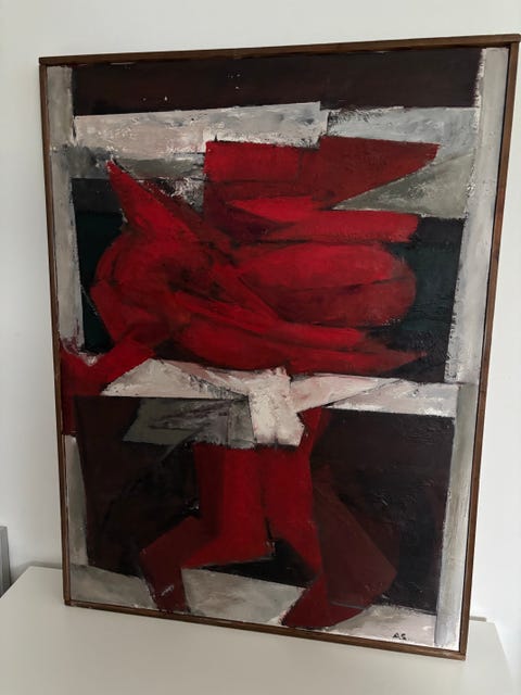 AS 65 Maleri Abstrakt Rød Sort Hvid