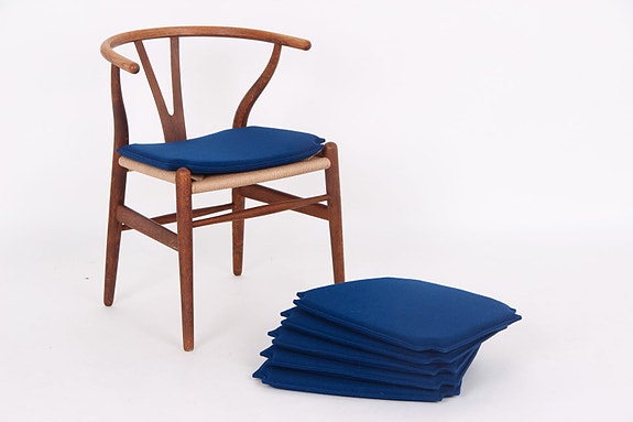 6 blå stofhynder til Y-stol CH24