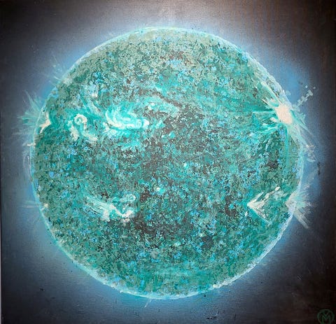 Blå sol med soludbrud