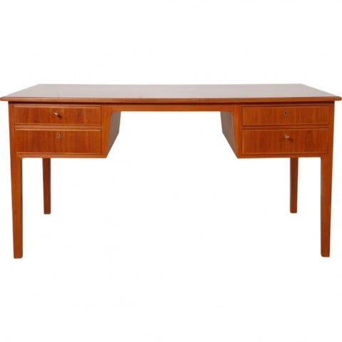 Skrivebord af Teak træ med 4 skuffer