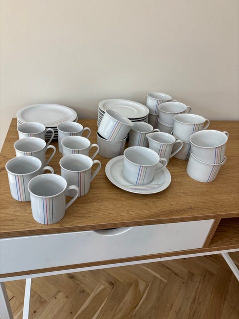 Spise- og kaffestel i hvid med guld