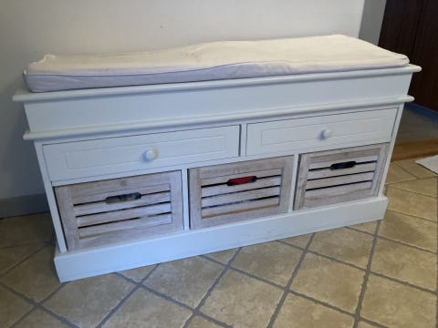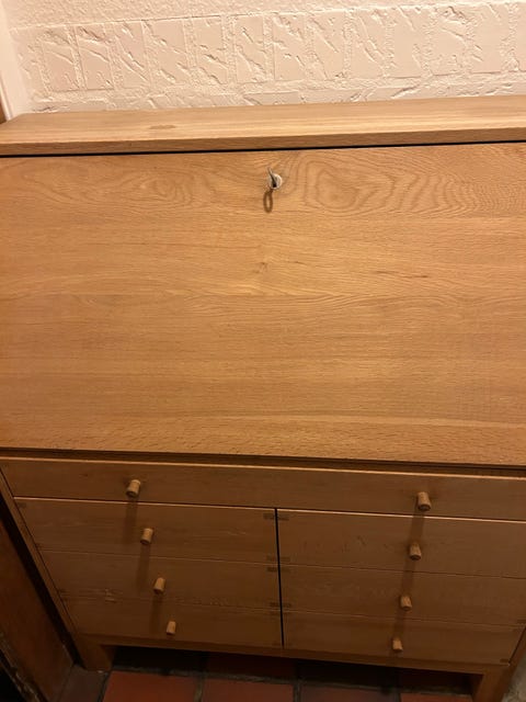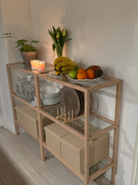 møbel med skuffe og hylde.