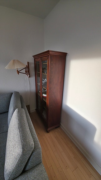 Vitrineskab i træ med glaslåger
