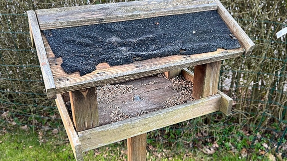 Fuglefoderbræt på fod i træ