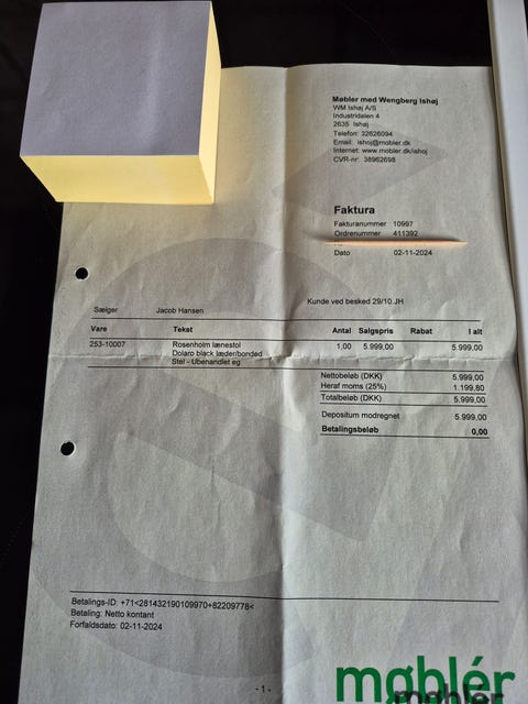 Lænestol Kr. 1250,-