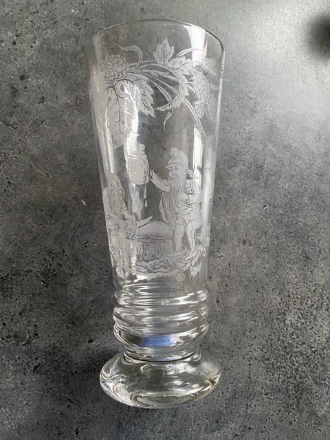 Porter glas med ætset motiv