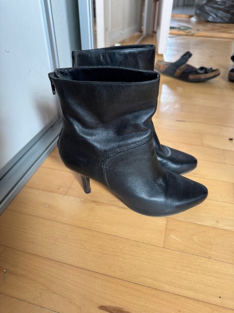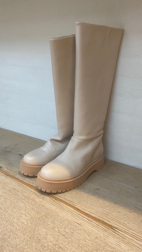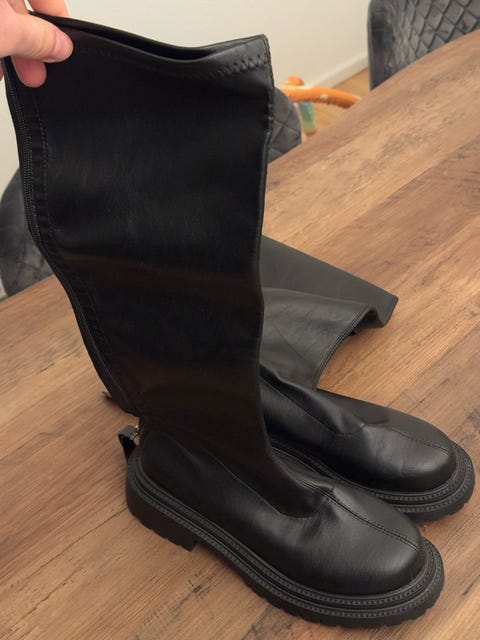 Valentino Garavani – Ubrugte sorte langskaftede læderstøvler med gyldne nitter