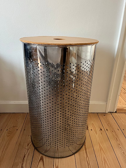 Vasketøjskurv med trælåg