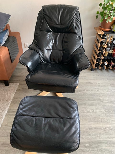 Arne Jacobsen 3207 Syver Armstole – Nypolstret i Cognac Læder & Sort Stel 7er