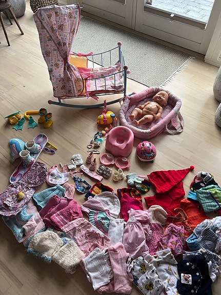 Dukke med tøj og 2 kufferter