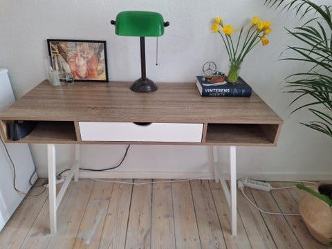 Find et brugt skrivebord til en lavere pris. På DBA er der 3.464 annonce(r), der sælger skriveborde. ## Et lille skrivebord kan gøre stor glæde Et skrivebord, der er unødvendigt for en anden, kan være det helt rigtige til dine behov. Især et skrivebord i massivt træ eller et elektrisk skrivebord kan være et dyrt køb, og du kan finde et velegnet produkt væsentligt billigere brugt. Et godt skrivebord har en velegnet højde for brugeren eller kan justeres. Når du gennemser annonce(r)ne, bør du tjekke bordets dimensioner og sammenligne dem med den bedste arbejdshøjde for dig.