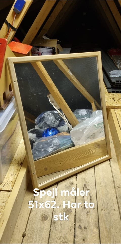Et spejl er en nem måde at forny indretningen og atmosfæren i et rum på. Især et stort vægspejl kan få rummet til at føles mere rummeligt. Spejlets stil kan komplementere rummets indretning eller tilføje et personligt præg. Et spejl i fuld længde er praktisk, og kan være både et stående spejl eller et væghængt spejl. På DBA kan du finde både hverdagsspejle og unikke, gamle spejle, som ikke længere fås i butikkerne.