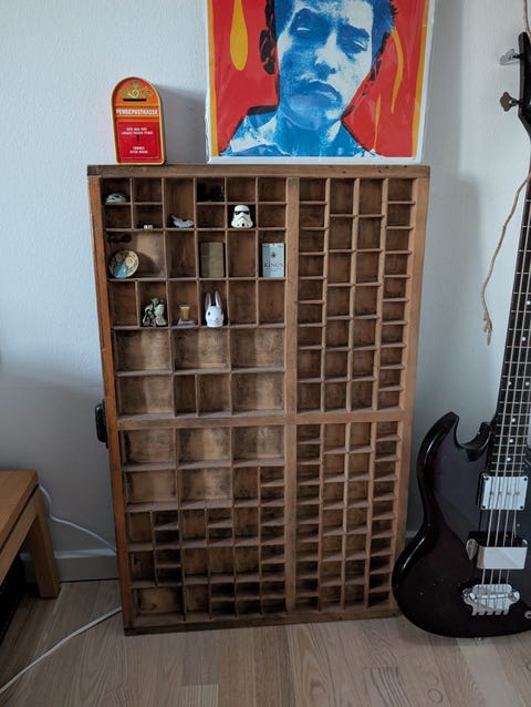 Smal reol i birk.
