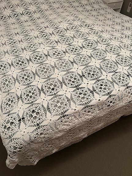 Sengetæppe hvid hæklet