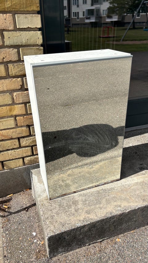 Skab med alu-kanter.