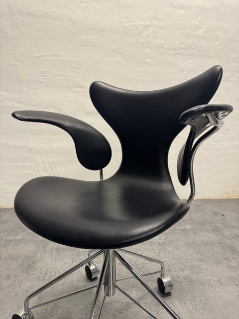 Fritz Hansen Arne Jacobsen stol træ med sort lædder hyndesæde og rund spisebord