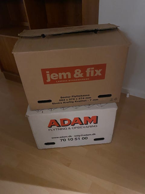 2 stk flyttekasser gives væk gratis