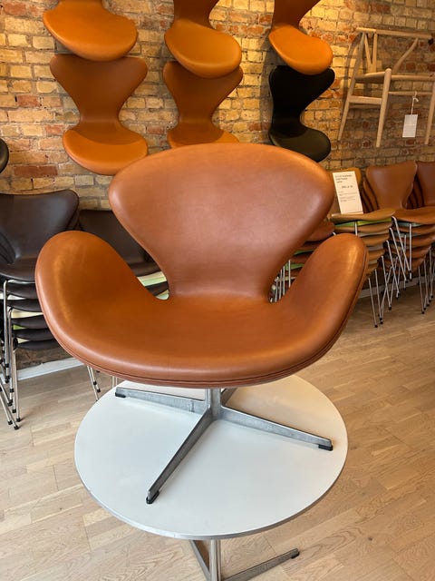 21.000 kr.Arne Jacobsen Svanestol – Fritz Hansen – 1960 – Nybetrukket i cognac anilinlæder Fritz HansenAarhus C2 t.MinidesignBetalt promoveringFøj til favoritter.
