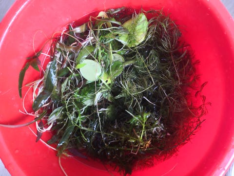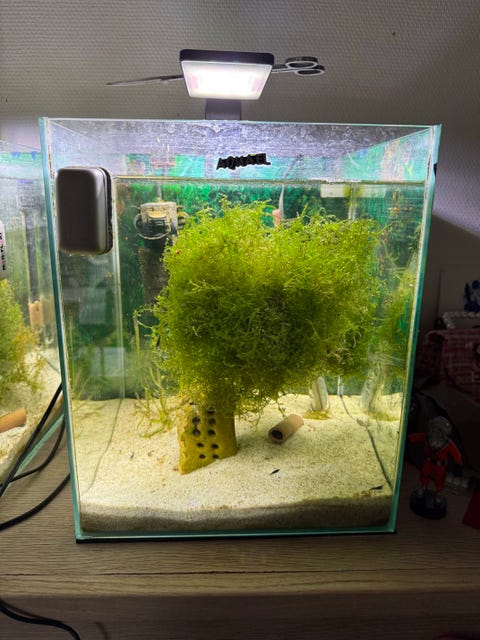 Akvarium med planter og filter