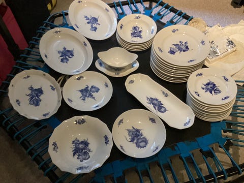 Royal Copenhagen Musselmalet Riflet Tekop og Underkop Sæt Blå og Hvid Porcelæn