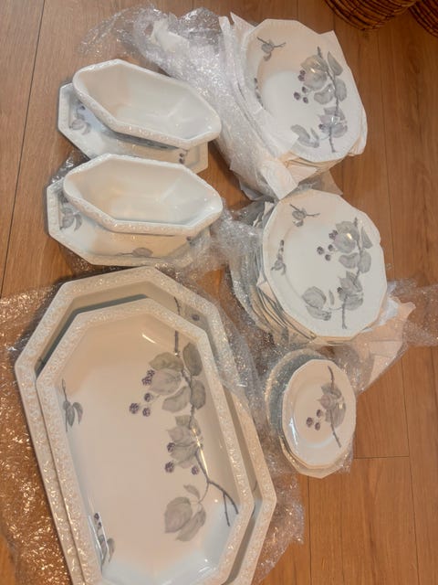 Royal Copenhagen halvblonde musselmalet stel - tallerkener, fade, skåle, kopper