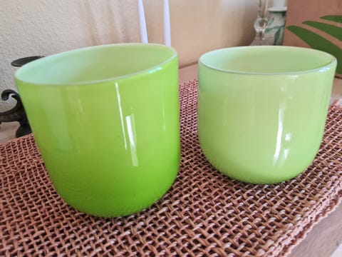 Flot grøn glas skål med hank